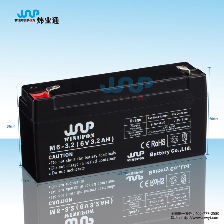 | 規格型號 | 6V3.2AH | 外形尺寸(±2mm) | 約重0.60KG | |||