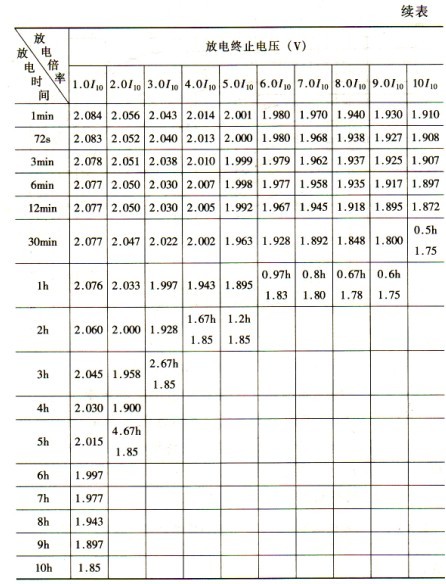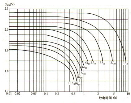 圖4—4閥控電池的放電特性曲線為增長新粒子的結晶中心,以提高充電電流的效率。 5,10~10110放電曲線比1,10~4,l0放電初期端電壓和中期端電壓變化速率變化大,其原因是高放電率下的放電電流很大,電池極化作用隨電流增加而變大。 閥控電池不同倍數(shù)率的放電特性見表4—4。表4—4 閥控電池不同倍率的放電特性曲線表(25℃)